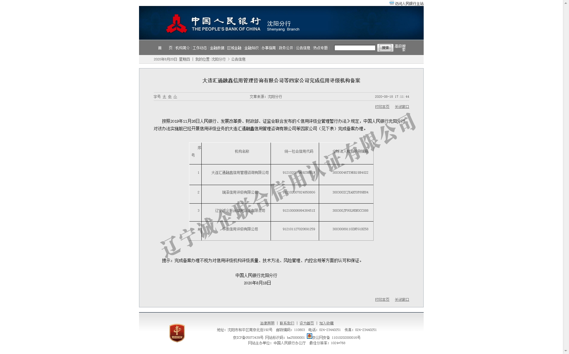 辽宁省重点建设工程招标投标领域信用评级资格证书