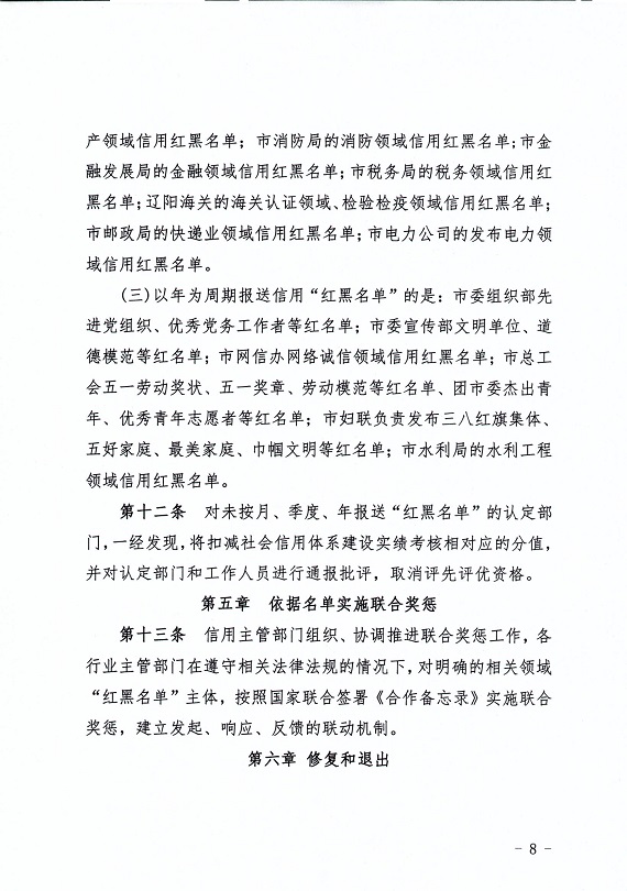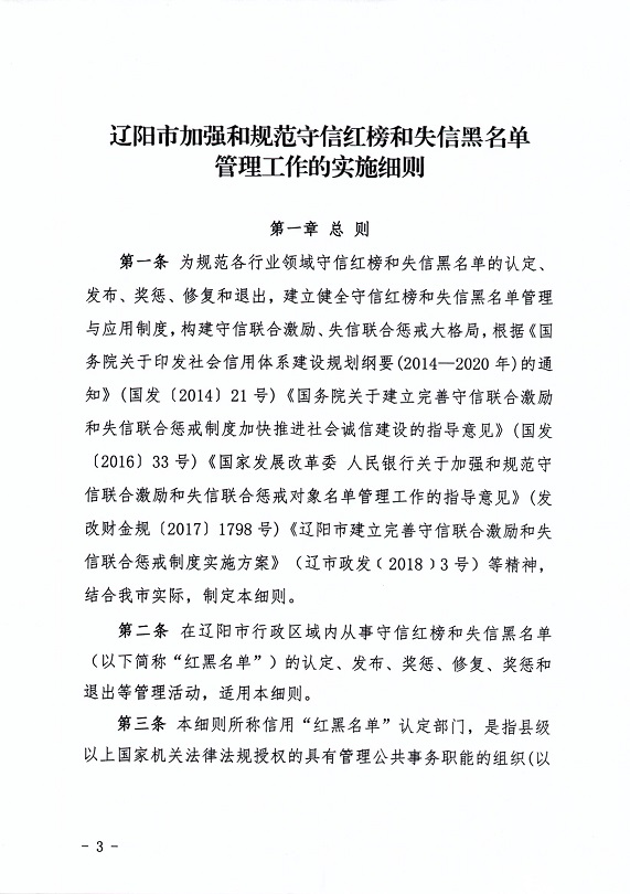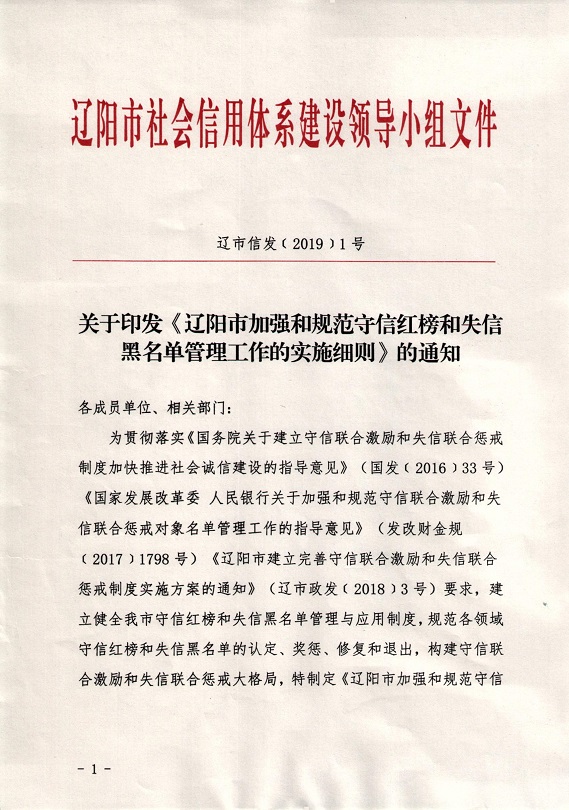 关于印发《辽阳市加强和规范守信红榜和失信黑名单管理工作的实施细则》的通知